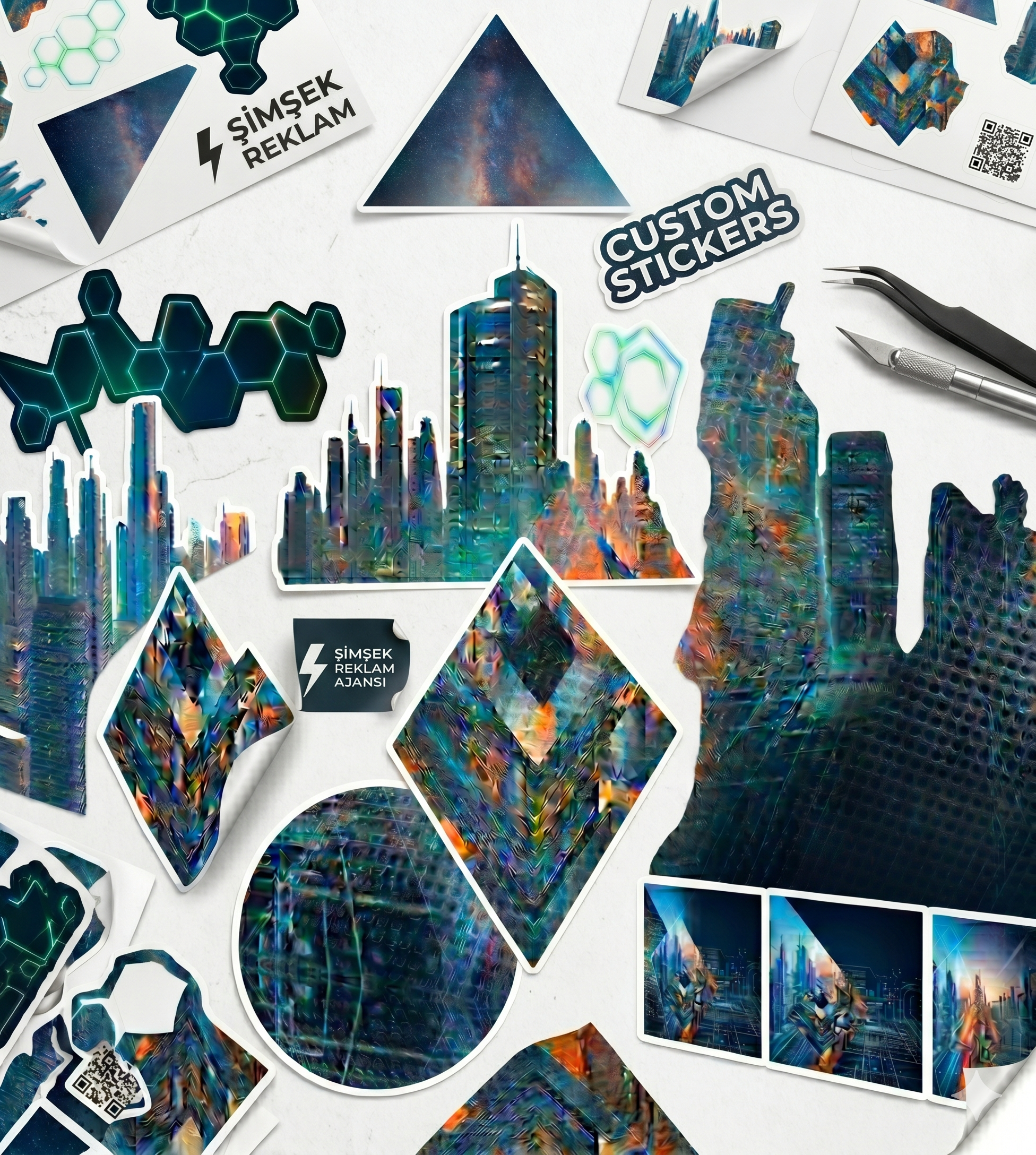 Küçük boyutlu, kesimli ve yapışkanlı ürün etiketleridir. Marka bilinirliğini artırmak için paketlemelerde ve promosyon ürünlerinde kullanılır.